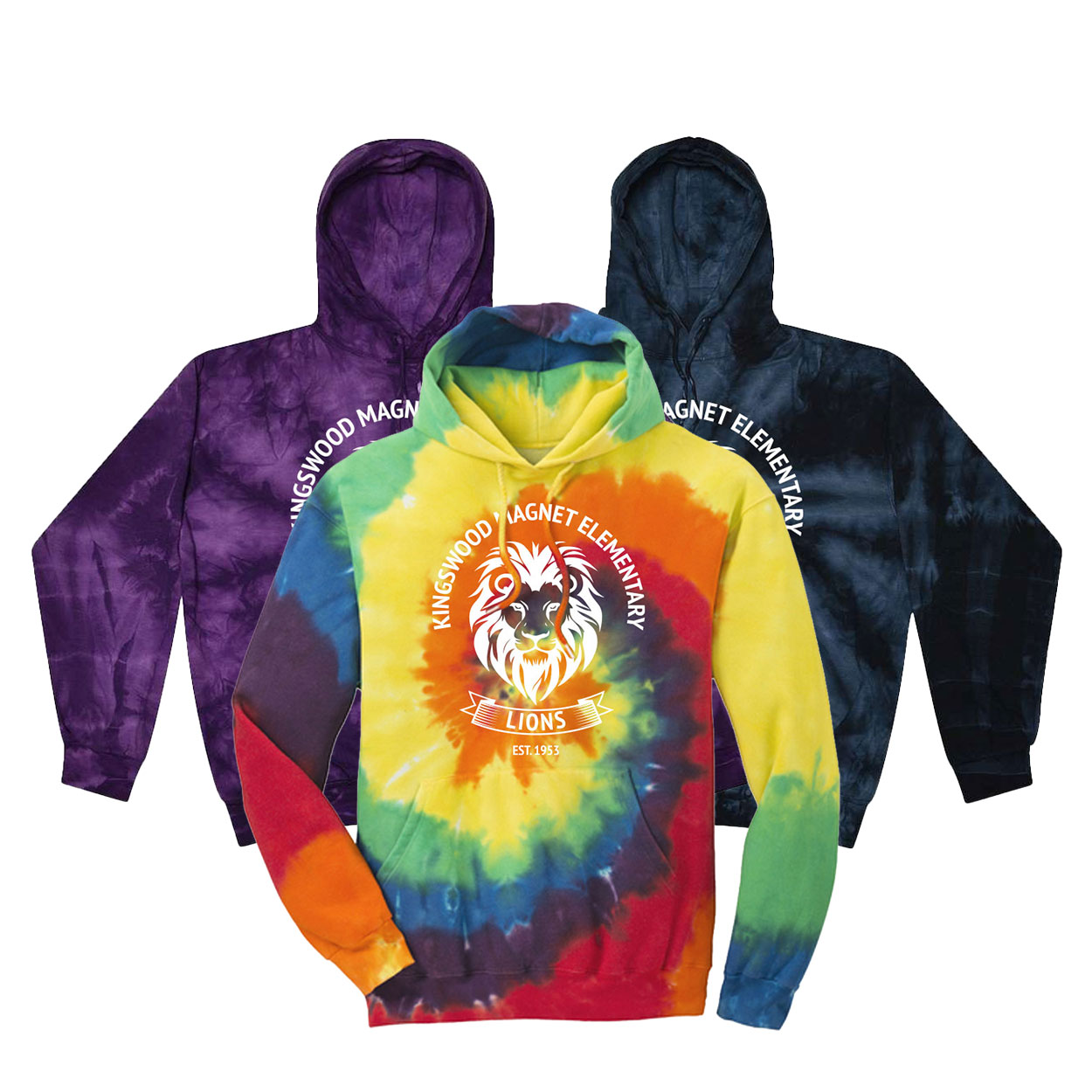 Show your school spirit in color with our ultra-soft, premium tie-dye hoodies — a bold twist on a cozy classic. Each hoodie is individually dyed for a one-of-a-kind look, featuring your logo printed front and center.