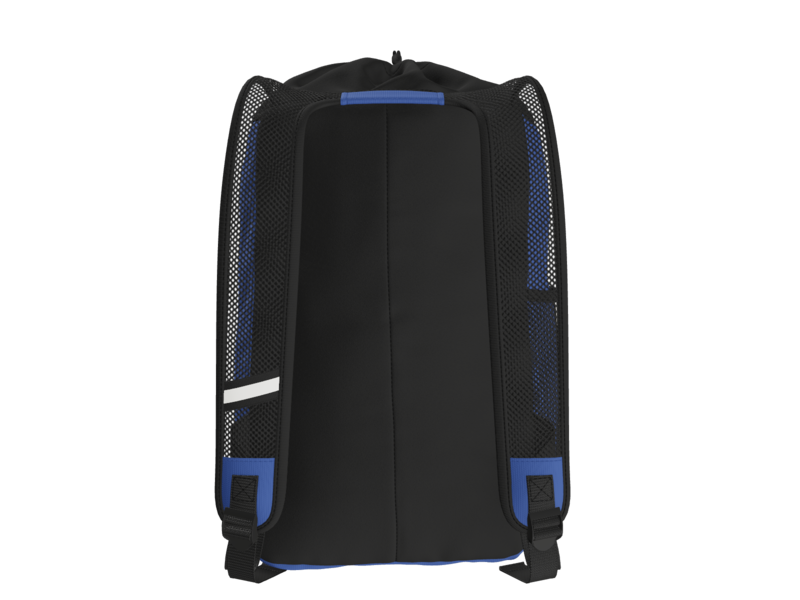 • Spacer mesh comfort straps with built-in grab handle and reflective trim